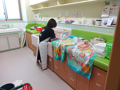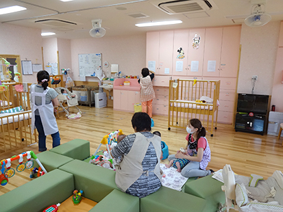 - 赤ちゃんたちの生活は、看護師、保育士、栄養士等、専門的な知識をもとにして養育にあたります。 年齢に応じて細かく配慮された日課にしたがって、温かい愛情をもって子供達の発育状態を見守って行きます。
